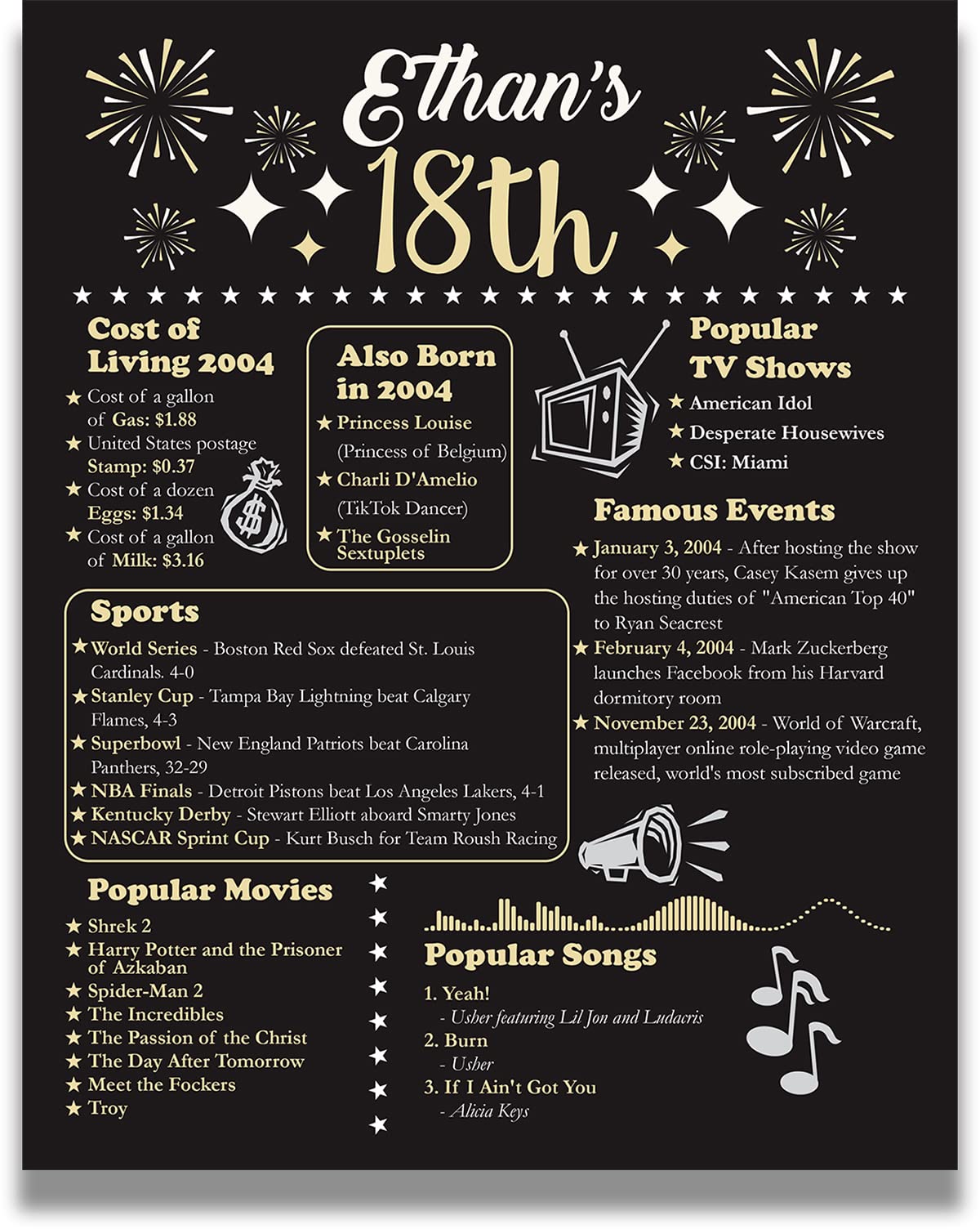 Amazon Com Personalized 18th Birthday Gifts For Teens Back In 2004 Home Decor Gifts Decorations Or Supplies For A Party 11x14 Unframed Print Posters Prints